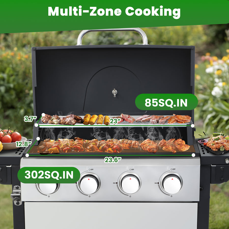 - š„ćSpacious Cooking Areać- Enjoy a generous 387 sq. in. cooking space, with a 302 sq. in. primary zone and an 85 sq. in. warming rack. Ideal for small gatherings or BBQ parties, allowing you to cook more food in less time. (BBQ grill, large cooking area, warming rack)