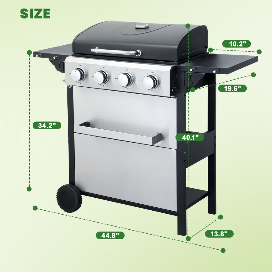 - š„ćHigh-Performance 4-Burner Grillć- This 4-burner propane gas grill features four burners, each delivering 8550 BTU, totaling high BTU 34200 BTU for powerful cooking. The integrated automatic ignition and stainless steel thermometer ensure perfect temperature control for juicy, evenly cooked meals. (propane gas grill, 4-burner, high BTU)