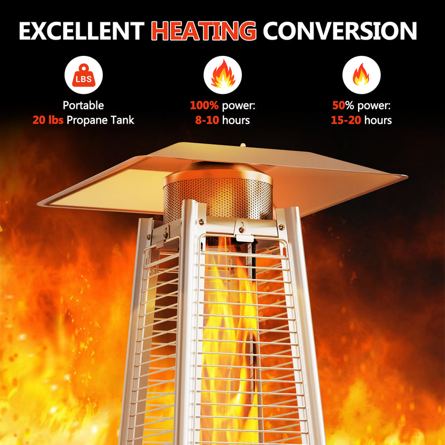 Wide Heating Radius - Provides steady warmth with a 48,000 BTU output, heating an area of up to 10 feet in diameter, perfect for outdoor gatherings and evening relaxation.