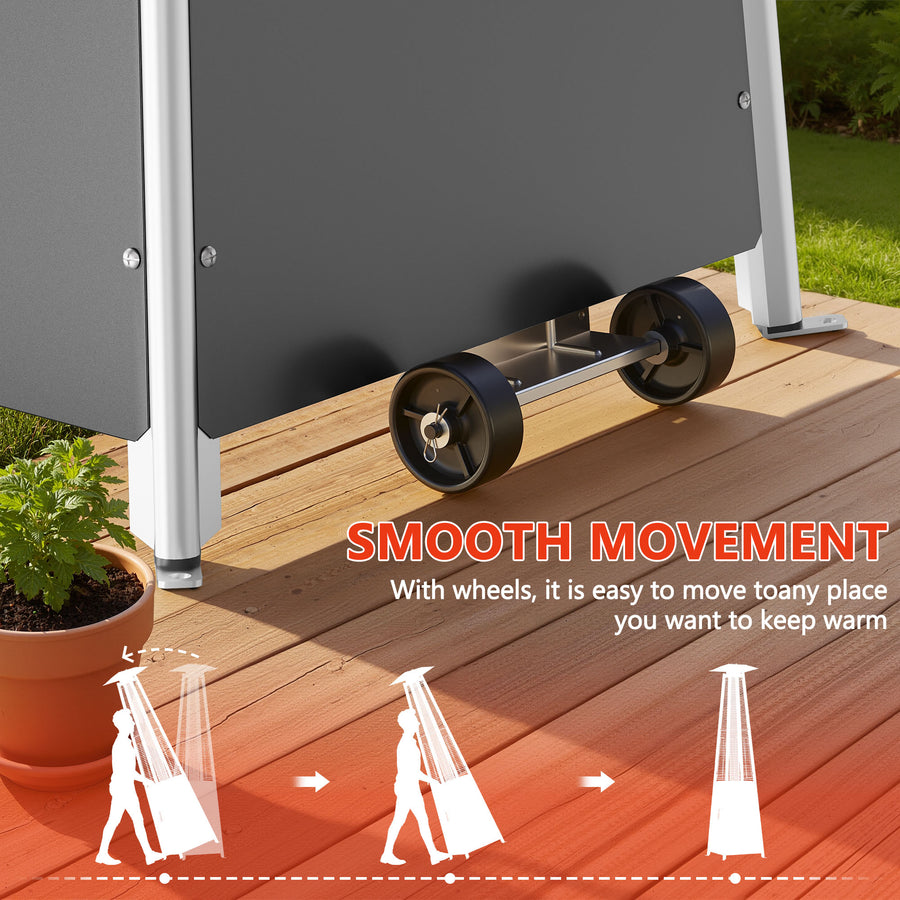 Portable & Easy to Move - Equipped with wheels, this heater can be easily moved to any spot in your patio, garden, or backyard, offering flexibility in outdoor gatherings.