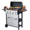 A stainless steel grill masterpiece designed for a superior grilling experience. With its high-powered burners and even heating, this grill ensures fast and reliable cooking results. The propane grill offers 4 burners up to 34,200BTU for professional grilling, while the single side burner is perfect for preparing side dishes. This grill is constructed with durable materials and easy-to-clean enameled cast iron cooking grates to guarantee longevity and ensure even heat distribution across the entire cooking surface, and its lid with thermometer allows you to clearly observe the temperature inside. Featuring a one-button electronic ignition system and two wheels for easy mobility, this grill is the ultimate choice for outdoor cooking enthusiasts.