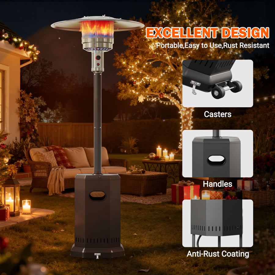 - 🛣️【High Heat Output】 – 50,000 BTU burner quickly warms up to ~300 sq ft, ideal for patios, backyards, or outdoor dining areas.