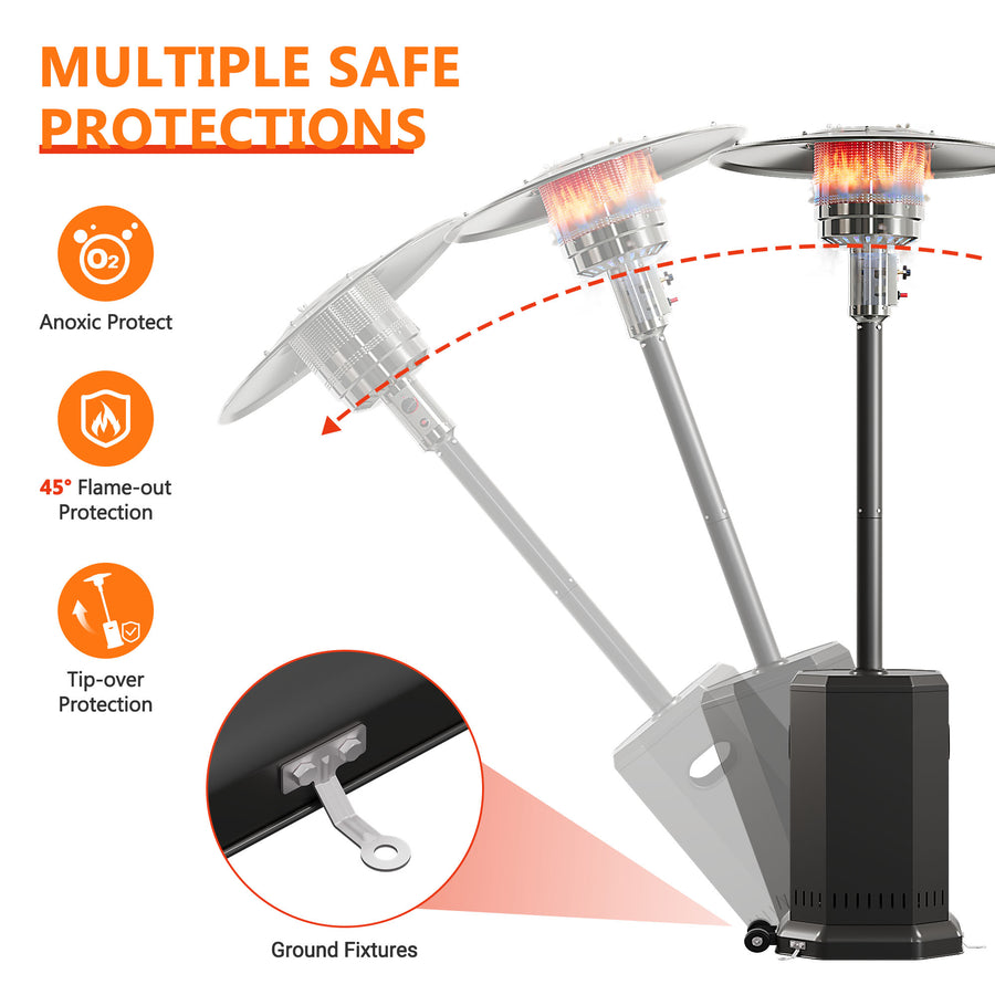- 🛣️【Built-In Safety】 – Automatic shut-off activates if the heater tilts beyond 45° or the flame goes out.