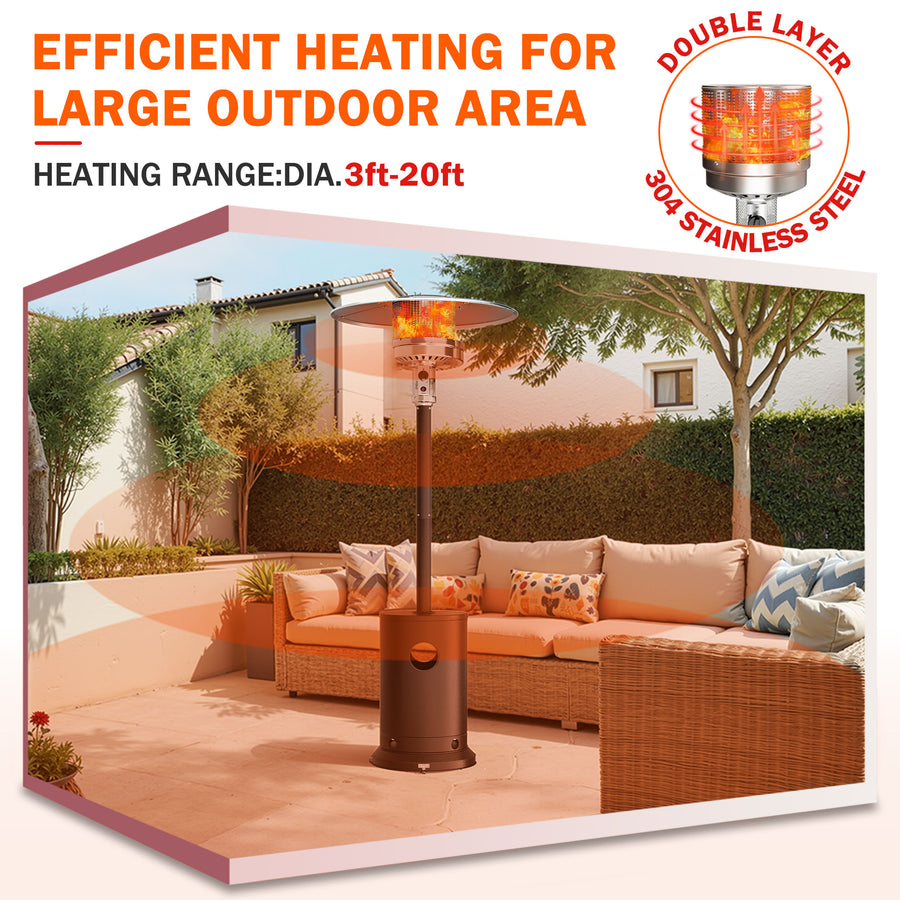 - ☀️Large Warming Range - This 50000BTU outdoor heater can easily warm up to 78.5 square feet. When you use the standard 20 lbs. With a propane cylinder, you'll enjoy 10 hours of continuous warmth with your loved ones.
